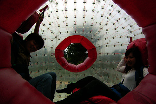 さして大きな渋滞もなくドイツ村に到着。この好天の土曜日にちょっと空き過ぎでは、と心配になったが、とりあえず今日の一番の目的のゾーブに乗って坂を転がり落ちる。かなり楽しい!! 2回も乗ってしまう。