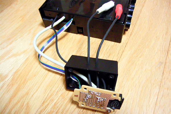 まず、1.のネジは適当に合うものを見つかればそれで済むが、探さなければならない。で、2.のDINスペース側のコネクタがL字形という形状が誤算であった。DINコネクタは方向があるため、外側を向く方向にしか刺さらず、ケーブルがフレームに干渉するのである。変換ボックスも多少削る加工が必要であるが、13pinケーブルの向きを変えてハンダ付けしなおさねばならない。うぅ。痛恨が3.でMP3ヘッドユニットの後ろで見かけたRCA端子は「4本とも出力」であった。なんだよー。RCA端子が4本あることは記憶していたのだが、2本が出力、2本が入力と思い込んでいた。こうなると、変換ボックスで出したRCAケーブルが無駄というのはともかく、PCからのオーディオ出力を車のスピーカに出す方法がなくなってしまう。