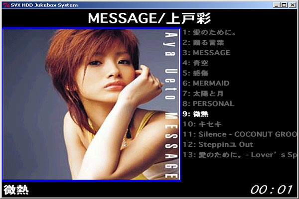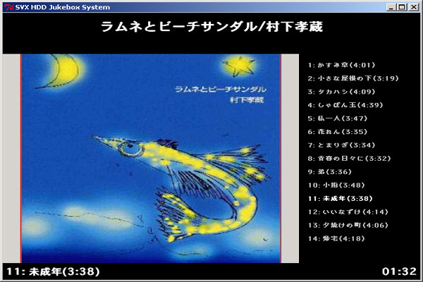 おいらの欲しいのは、こういう感じのヤツなのである。ガツーンとジャケットが出て、上にはアルバム名、アーティスト名。右にはアルバム内の曲名。下には再生中の曲と経過時間である。突貫で作ったので現在のところ外見だけだが、ちゃんとRuby/tkによって出力したウィンドウである。まだ最終形ではないが、ここまでの表示は、現状のカーステやカーナビでは逆立ちしたって無理だろう。PCを搭載するなら、これくらいはやらないとツマらないではないか。うはは。(ちなみに画面に出ているアルバムはサンプルで表示しているだけで深い意味はない。名盤なので聴いて損はないが)。