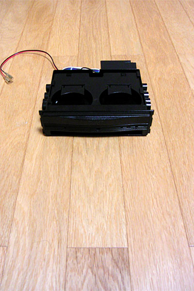 まず、LCDディスプレイのマウント方法についての作業である。DINスペース用のボックスには、ドリンクホルダーと引き出しが装備されているが、昨日書いたように引き出しはケーブル類とスイッチパネルの収納ボックスとなっているので、ドリンクホルダー用の引き出し部分にディスプレイを固定する予定である。といっても、なんのことはない、タップでネジ切って金具でネジ止め固定である。