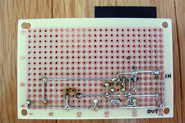 やることは決まっているのだが、思うほどには作業が進まない今日この頃である。で、今日は昼休みに、コネクタ部品を内蔵する変更に伴う、変換ボックス内の配線図の修正を行い、晩に基板の切断加工と配線を行った。他人には何の参考にもならないが、一応配線図を載せておこう。