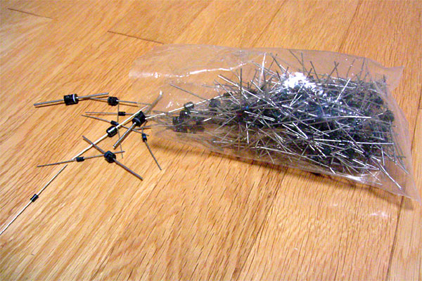 今日は足りなかったオスの9pinDINコネクタを予備を含めて2個、見切り品のタクトスイッチが格安だったのでとりあえず5個、消耗しがちなピンフレーム、10kの抵抗、なにげにPICとLM35を適当に買い足しておいた。1年前は混んだ店内をドキドキしながら見て回り、長時間悩んだ挙句にトンチンカンな買い物をしていたが、ここのところ慣れたモンである。