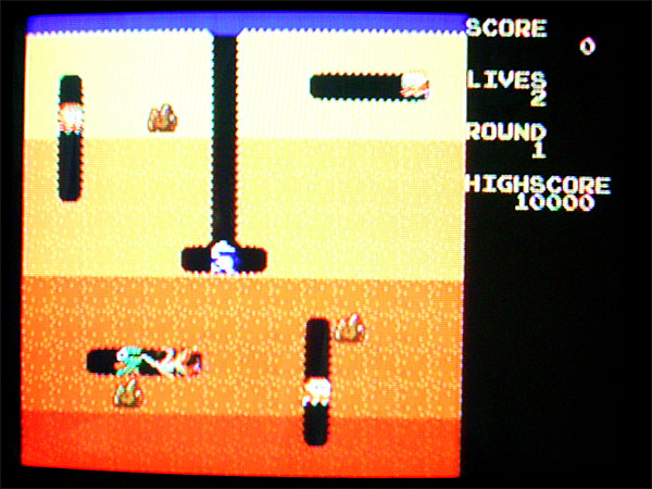 先の2機種と同じくTV画面が横長であるため左に寄っている。画面右側はスコアと残機、クリア面数をあらわす数字が表示される。オリジナルでは地表に花が咲くことでクリア面数表示がなされていたが、地表部分が非常に狭くレイアウトされているため、省略されている。オリジナルでは地層が微妙に波打っていたが、本機ではまったくの水平。面が進むと地層の色が変化するのはオリジナル通りだが、変化の仕方は異なるようである。ベジタブルはちゃんと出現する。敵はちゃんとプーカとファイガーの2種類。しばらくすると目変化して地中を追ってくるし、面が進むと一部屋に2匹入っているし、残り1匹になると逃げ出すのもオリジナルどおりである。BGM、効果音に関しても十分にオリジナルを再現している。歩きを止めるとBGMが止まるのもオリジナルどおりである。ハイスコアBGMも存在する。しかしながら、ファイガーの炎は薄い土の壁を通り抜けるのに、ポンプのヤリは届かないという点がオリジナルと異なる。また、自機の当たり判定が微妙にデカい、(連射しにくいボタンではあるが)ポンプ連射により敵を倒すスピードが速い、敵の速度が速いなど、オリジナルとの量的な違いが目立つ。これらの要素が合わさった結果、かなり難易度は高くなってしまっている。表面的な再現度は高いのだが、残念なことに移植度は低いといえよう。