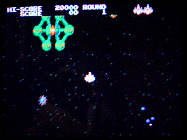 ラリーXと同じような画面構成を持つ本作だが、レーダー形状も踏襲している。つまり、メイン画面の上にドットがオーバーラップ表示されているのである。バックが明るいラリーXと異なり、レーダーは見やすいが敵弾と混同することがある、レーダーに縁がないためどこでループするのかがわからないのが残念である。そして、あまりに大きなオリジナルとの違いが、本作は8方向スクロールが可能なのにもかかわらず、本機のレバーは4方向レバーということである。恐らく、単なるハードウェア的な問題であって、機器内部で動きを制限しているプレートを外せば、ソフトウェア的には8方向に移動が可能と思われるが、これのせいでかなり遊びにくくなっている。とはいえ、他の4作は4方向レバーのおかげで遊びやすいのも確かなので、微妙な問題なのだが。基地の配置に関してはオリジナルと異なるようであるが、これはさほど問題ではないだろう。基地は中心が開いたときに弾を打ち込む方法と、周囲の6個のモジュール全てを破壊する方法の2種類の破壊方法がとれるのもオリジナルどおり。ステージ開始時にじわっとスクロールが開始したり、面が進むと基地の中心が開くと同時に円錐状の敵ミサイルが発射されたり、リーダー機を伴うフォーメーションアタック、スパイシップを逃すことによるコンディションレッド、敵ミサイルが周囲のアステロイドや機雷に勝手にブツかって破壊するのも再現されている。ただ若干、機雷爆発時の当たり判定持続時間が短いようである。BGMはコンディション変化に伴ってめまぐるしく変化し、効果音に関しても十分にオリジナルを再現している。4方向レバーの件はあるが、移植度は非常に高いといえよう。