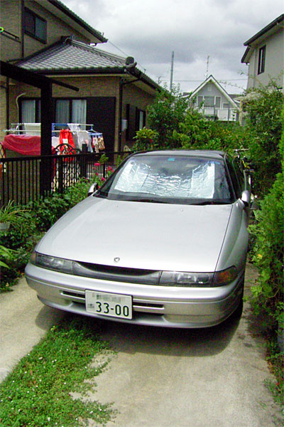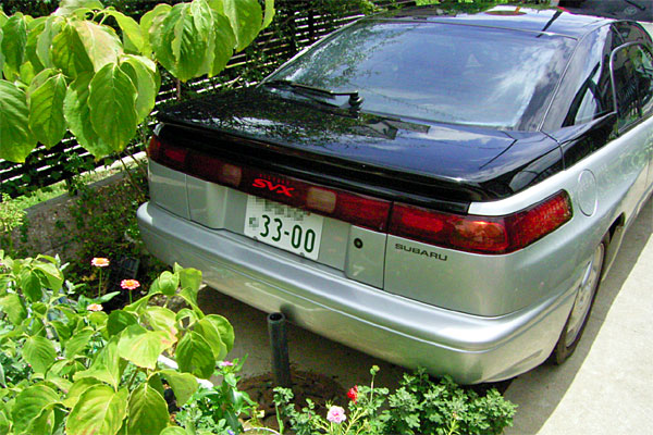 ところが、祖父の家の前の道が狭いので、ちょっとした道の窪みに車を縦列駐車しようとしたところ、微妙に「ミシ……」という音が……。ありゃー、別に縦列が不得意なわけではないのだが、後ろ見ながらにして右後ろのバンパーを軽くこすってしまった模様。SVXの後部ってグラマーに湾曲してるし、壁がのっぺりしたペイントで遠近感がツカめなかったとはいえ、ショック。まぁ、コンパウンドで取れそうな程度なのだが……。