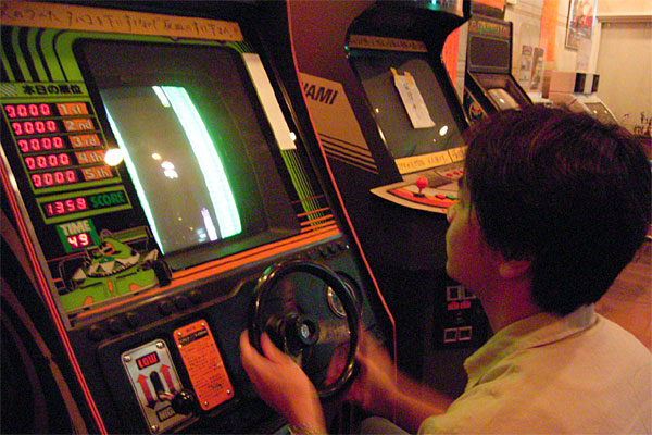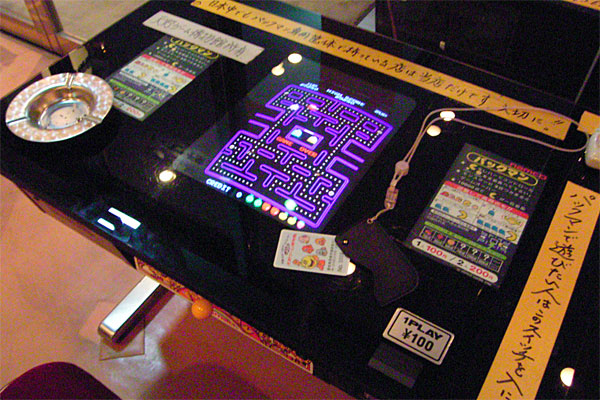 驚き!! パックマンのオリジナル筐体が現存しているとは!! 昔のテーブル筐体のディスプレイが小さかったことにも驚き、そのレバーの感触も今とは違うことにも驚いた。タイトーのスピードレースって昔よく見たけど、そのまんまの姿で置いてあるってのもスゴいし、プレイしてもハンドルがシッカリ動くし。