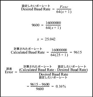 例12-1に、以下の状況における、ボーレートの誤差の計算例を示します: