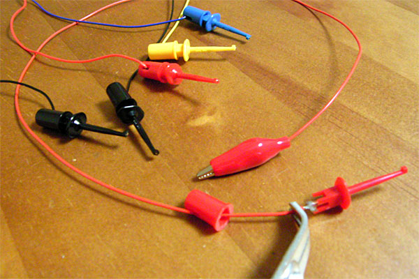 これで、テスター←→ICクリップが2本、ワニ口←→ICクリップが4本、ICクリップ←→ICクリップが2本という体制。ただ、いずれテスター←→ICクリップの先は交換しなくてはいけないだろうから、そのうち購入しておこう。なお、このテスターリードの先をICクリップに交換するという行為、作業性を著しく向上し、特に使いづらくなるわけでもないので、とってもお勧めである。