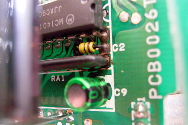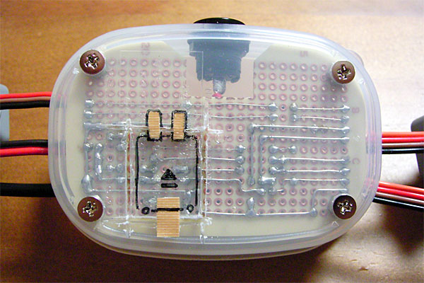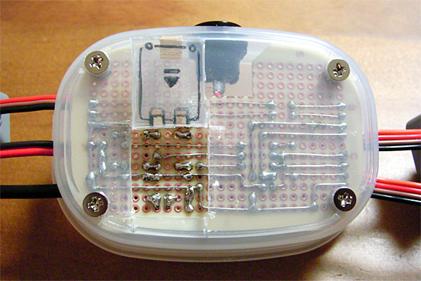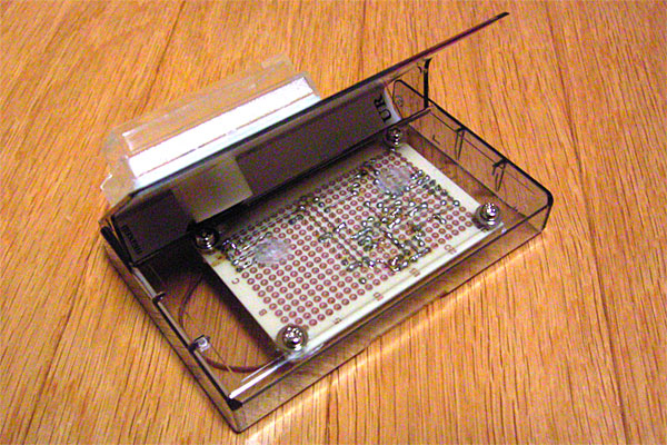 さて、メビウスが片付いたところで、再びシリアルポート切り替え機の通信中LED点灯しっぱなし問題を片付ける。昨日、ブレッドボード上で修正回路のテストを行ったので、それを基板に実際に施すワケだ。んが、既にケーブルの長さを最適化してしまったため、ケースから基板を取り出すことはできない。
