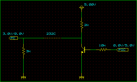 こうすればよい。そもそも10KΩというのがデカすぎだったのである。図のようにすれば、最もキビシイ状況でも+3Vを確保することができるのである。2KΩという抵抗は手元にないので、2.2KΩに取り替えてみたところ、ちゃんと送信ができるようになった。やれやれ。