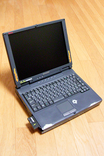 右のプレートは上をバックライトを点灯するインバータの高圧線が通過するため、保護のプラ板が貼ってあった。剥がして同じように新しいプレートに貼り付けて、取り付ける。後は各カバーをパチパチとハメて、ネジを締めたら、修理完了ッ!! メビウス完全復活である……うれしい……。性能的にはもはやどーしよーもないPCであるが、いろいろ手をかけているのでカワイイヤツである。これからも元気で働いておくれよ。うるうる。