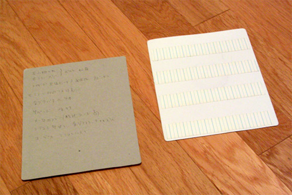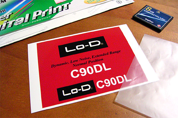 さっそく、カッターでさくさく切る。ただし、相手は非常にデリケートな印画紙だ。ちょっとコスればキズがつくし、ちょっと触れれば指紋もつく。写真の入っていた薄いビニールのスリーブを活用しつつ加工する。をぅをぅ、ますます雰囲気出てきたじゃねーか。カセットケースに入れてみる。