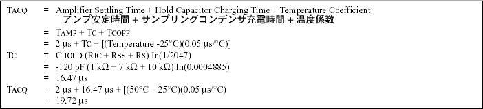 最短サンプリング時間を得るためのTACQについては、PICmicro Mid-Range MCU Family Reference Manual(DS33023)を参照してください。