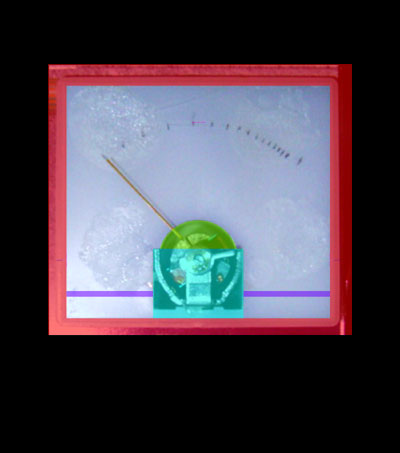 ホントは松本零士風のゴチャゴチャした計器に仕上げたいのだが、色がないのも寂しいのでシンプルなデザインにすることにした。まず、PWMの電圧と針の位置関係をパネルに鉛筆で印をつけ、デジカメで真上から写真を撮る。撮ったらPhotoShopに読み込み、若干コントラストを上げ、トリミングする。
