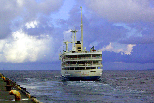 今日は仕事が終わってから、浜松町の竹芝桟橋へ。今日からカミさんと御蔵島に旅行するのである。東京の離島は近い順に「大島」「利島」「新島」「式根島」「神津島」「三宅島」「御蔵島」「八丈島」「青ヶ島」「父島」「母島」とあるが、その「御蔵島」が目的地である。御蔵島へは毎日船が出ており、深夜に東京を出発、早朝に三宅島、御蔵島に到着、船はそのまま八丈島まで行き、戻って昼過ぎに御蔵島、三宅島、深夜に東京という繰り返しをしている。なおフェリーではないため、車を持って行くことはできないが、車で移動するほどの島でもない。