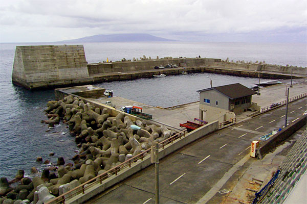 防波堤はないと書いたが、小さな漁船用の防波堤はある。イルカ見物船もココから出る。なお、中央線のある道路はココだけだったと思う。すべてコンクリート舗装で、狭く、走っている車はほとんどワンボックスばかり。ちなみにすべて品川ナンバーである。