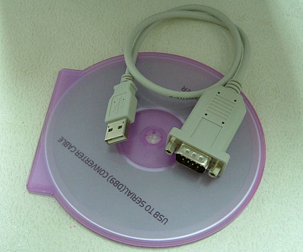 そんな状況の中、登場したのがコレである。USB->シリアル変換ケーブル、つまりUSBをシリアルポートに変換してしまうアイテムである。これさえあれば、USBポートしかないPCでも、シリアルポートが利用できるのである。