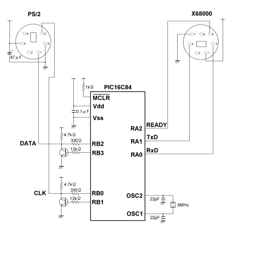 2004-09-29(Wed) X68kキーボード変換アダプタ回路配線設計