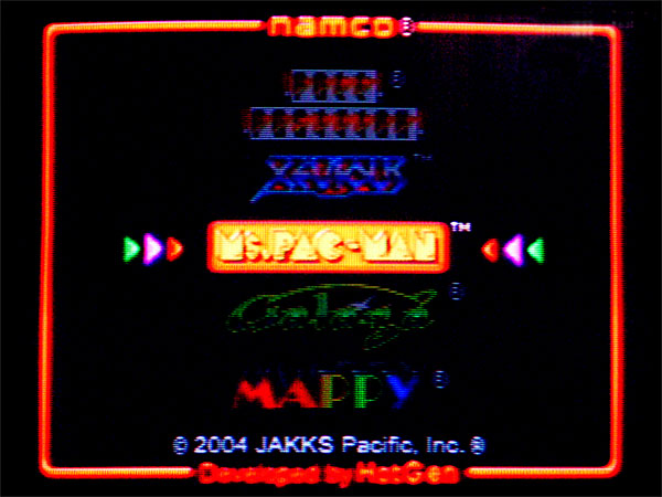 さて、今日はカミさんの家族と焼肉を食べに行ってしまい、特に工作ネタがないので、遅まきながら例の「Namco TV Classics - Ms. Pac Man」のレビューをするのである。この機種は有名な5つのナムコのゲームができるが、今日はそのハードウェアと2つのゲームについてのレビューである。なお以下、本製品を「今作」、以前の「Namco TV Classic 5 in 1 Games」を「前作」と記すのでそのつもりで。