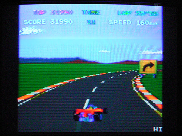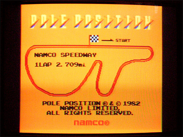 個人的には良くも悪くも採用に意外性を感じた本作である。原作(アーケードゲーム)はコックピットタイプの贅沢な機種で、ほぼ初めて製作された3次元表示のレースゲームである。原作には続編の「ポールポジション2」が存在し、自車が青、爆発がハデ、コースは4種から選択(含む鈴鹿)という違いがあるが、本作は元祖ポールポジションということで、自車は赤、爆発は地味、コースは富士のみである。ゲームを開始すると、やはり海外モノということで「予選スタートです」ではなく英語でしゃべる。実は私はこのゲームもほとんど原作をプレイしていないので、ゲームの内容レビューに近いものになってしまうが、ゲーム的には1箇所あるヘアピン以外はフルアクセルで曲がれてしまうため、比較的単調なゲームになってしまっている。また、本戦ではラップタイムが表示されないという信じられない仕様(たぶん原作どおりなのだろうが)になってしまっており、このあたりで最速ラップを刻むというやりこみ要素がスポイルされてしまっているのが残念なところだ。なお、レバーをヒネってハンドル、ボタンでギアチェンジという操作性は、以外と良好で特に問題は感じなかった。