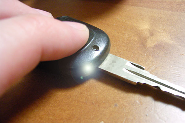 上の写真はイメージ画像だが、デジカメのCCDは赤外線領域まで感度があるので赤外線LEDが白く光ることが確認できる。これでボタンを押しても光らない場合は「カギ」に原因があるとわかる。そうでなければ「ドア」らしいことがわかる。ちなみに、世間一般の赤外線リモコンも同じように白く光るのを確認できる。面白いのでゼヒ試してみよう。