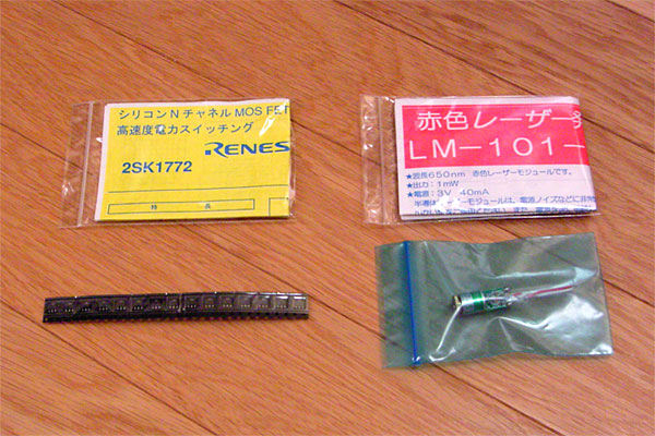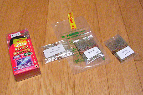 話は替わるが、秋月の店員さんっていつも紙袋に計算式をサクサクと書いて会計してくれるけど、まちがったりしないのか以前から疑問だった。ここんトコこのBlogに買い物内容を記録しているので、まちがえたりしたらスグわかるのだ。今までまちがっていたことはなかった……が、今回はハデにまちがえていたぞ。しかも計算も単価もだ。計算を200円、単価を10円、30円まちがえて、結局210円も安くしてしまっている。よって以下の表は合計が合わないが、まぁそういうこともあるってことだ。