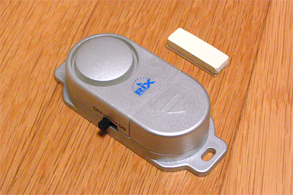 ……とか景気いいタイトルをつけつつ、まずは地味な話題から。ずっと前からやりたかった玄関ドア開閉センサのための部品サルベージを行うのだ。相手は最近100円ショップで売っているドア開閉アラームだ。このアイテムは内部に磁石に反応するスイッチを内蔵しているのでソレを取り出す。こういう磁気に反応して導通するスイッチはアレコレ便利そうだが、あまり部品といて売っているのを見かけないな。なんでだろうか?