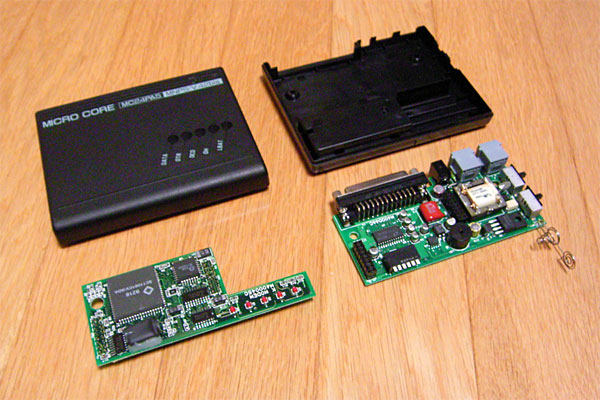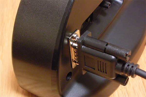 と、これだけだとあまり面白くないので、ちょっとイタズラしてみた。9pinDINコネクタを取り付けてみたのだ。ドリルで5箇所ほど穴を開けてニッパで台形につなぎ、ヤスリでゴリゴリ。コネクタが収まる大きさになったら、両脇にネジ穴を空けてネジ止め。なんともアレゲなニオイがタダヨってきたぞ。うひゃひゃひゃ。