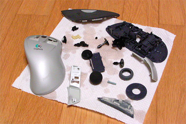 しかしながら、私の好みであるボールマウスであるし、なにせ当時7,000円近く出して購入した記憶があるLogitechブランドの高級マウスだ。先日のワイヤレスマウス修理の際に職場のデスクトップPCのマウスからホイールのエンコーダパーツを抜いてから使い勝手が悪くてかなわないので(←アタリマエだっつーの)このマウスを復活させるのである。