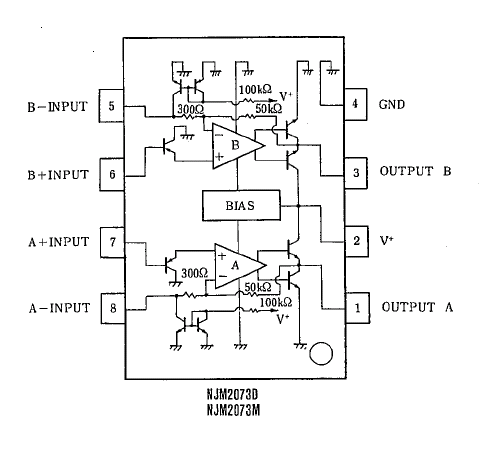 しかしながら出てこない。製造元のJRCのページからNJMのページに飛んで、データシートのページを探しても型番が出てこない。ディスコンのページまで行っても出てこない。なんでじゃ? なんかの不都合で闇に葬られたチップなんか? 一般のユーザのページで「一般的な2回路入りオペアンプ」という情報までは挙がっているのだぞ。いかんせん各足の役割まではわからないが。