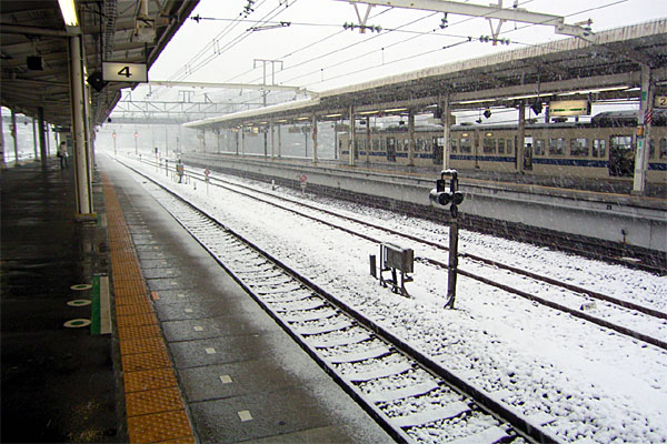 ……が!! なんか雪がガッツリと降ってるんですが……見事なまでの雪景色。駅なんか「A列車で行こう」シリーズの冬景色そのままになっております……などと考えるオイラはオカシな人なのだろうか。そういえば、あのゲームは雪で列車が遅延したりする要素はなかったなぁ。今日の常磐線は大丈夫なのだろうか。
