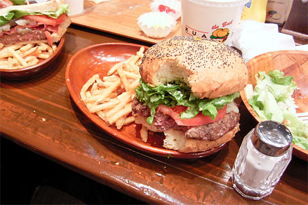 などという心配をよそに、順調に秋葉原へ。最近はそんなに買うものはないので、例によって買い物はちょっぴり。サクサク終わらせ、カミさんと合流「クアアイナ」というハワイ系ハンバーガ屋に向かう。このハンバーガ屋、ハンバーガといえどファーストフードではなくて結構シッカリと食わせてくれる。肉もガツーンとマッシブでウマい。ポテトもサクサクである。値段も倍ぐらいするのでマメには行けないのだが、ま、それはそうクリスマスということで。
