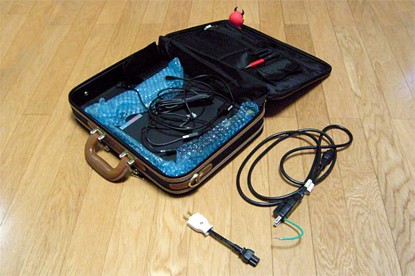 ここんトコ激しくYRPへ通い、その都度ノートPCを持って行ったのだが、オイラ愛用のソフトスーツケースが小さいために、ノートPCとACアダプタ、アヒルメモリ、無線玉マウスを入れると、ほとんどギリギリ。あとはH"ケーブル、USBケーブルとACアダプタ用の電源ケーブルを押し込むというアリサマである。
