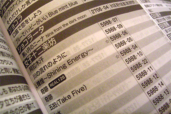 さて、夕方はひさびさにカミさんとカラオケに行く。なんでも、先日ハマったPS2のゲーム「塊魂」の中の「歌付きBGM」がカラオケに入っているというウワサを耳にし、近所のSHIDAXに向かうのである。受付に行ってみるとUGA系の通信カラオケがなかったので、イキナリがっくりだったのだが、SHIDAXのサイトで1時間割引券を印刷して気合を入れていたので、とりあえず2時間ほど歌うことにした。