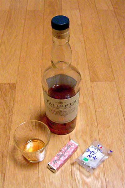 前々回のMcCLELLAND'S-ISLAYでは失敗したが、かといって味見できるわけでもないので、運をドーンと天に任せるコトになる。コレがホントの任天ドーン……って、ファミコンかよ!! ……とか、ひとりツッコミつつ、決定!! 今回はお気に入りのグレンモーレンジ(Glenmorangie)と同じHighland系ながら、Skye島というトコロで醸造されたタリスカー(Talisker)というモルトだ。島で醸造ってのが、前々回のMcCLELLAND'S-ISLAYを想像させてちょっと不安だが。