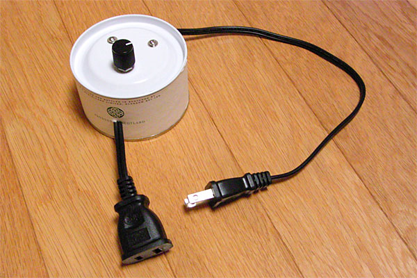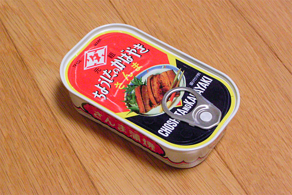 で、手持ちのプラケースを物色してみる……大きさが足りない。プリント基板のサイズとピッタリ同じではどうしようもない。今回のキットの場合、AC100Vが流れる配線があるため、ムキ出しは絶対にマズい。オマケにトライアックは放熱が必要だ。できれば金属のケースを使い、ヒートシンクを兼用したい……これは……サンマのカバ焼の缶詰だ。サイズ的にはなかなかヨイが、ちょっと高さが足りない。缶のフタを剥がすと元に戻らないのも調子が悪い。オモシロそうな見た目にはなるだろうが、残念ながらダメである。