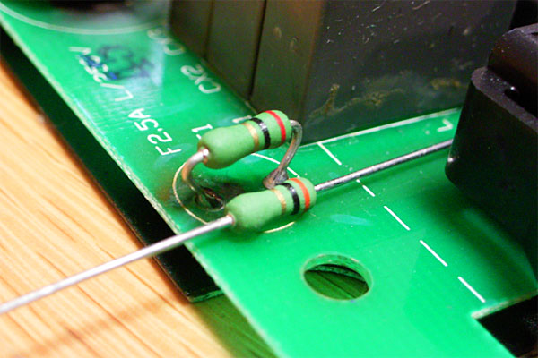 上記のノートPCの電源修理の際にイキナリすっ飛ばしたヒューズを再度確認してみた。やっぱり色はヒューズとソックリだ。ヒューズの耐圧は250Vで、赤黒金が2A、橙黒金で3Aだったから……無理に茶黒茶金を解釈すると……10A……かな? むぅ。この期に及んで考え直しても、間違っても不思議はない状況である。