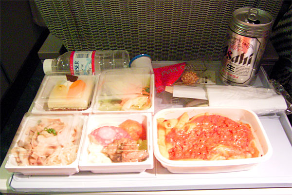 朝飯を食わなかったので、空港内で食う。空港内とはいっても、天井はない。まるでテーマパークのような雰囲気の空港の待合だ。妙にデカいクロワッサンが売っていたのでそれを買って食う。かなりウマいのでそのデカさにもかかわらず、モリモリと平らげたが、ちょっと不安になるバターの使用量であった。