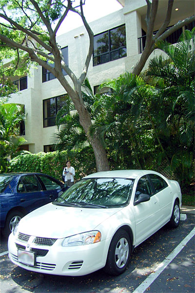 泊まるコンドミニアムまで時速55マイルで約30分のハイスピードドライブ。信号は2つしかなかった。街道沿いの店も民家もゼロだ。かなり思い切った島である。コンドミニアムはだだっぴろくて、設備もスゴい。冷蔵庫や洗濯機もついている。こりゃエエわい。