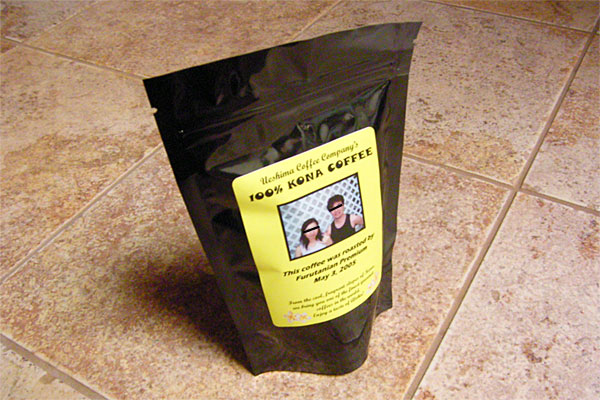 ちとハズかしいコトに、焙煎体験でローストしたコーヒー豆は、写真付きの妙なラベルを貼った袋に入れて持ち帰ることになっている。しかも、調子に乗ってフルタニアン・プレミアムなどというブランドをデッチ上げてしまった。あーあ。