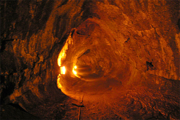 火口を取り巻くような道がまるごと火山公園であり、湯気の噴出す穴や、クレーターが点在している。面白いのはラバチューブという溶岩トンネルで、溶岩が通った後、鍾乳洞のようになったようなトンネルを通ることができる。100mくらいであったが、この世はホントに摩訶不思議なモノよ。