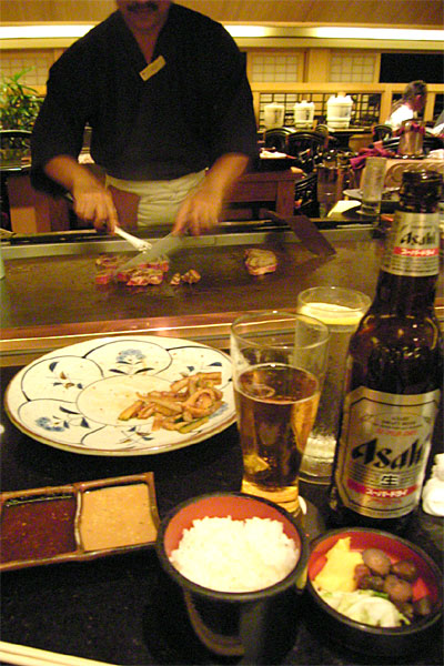 さて夕方になったので、今日はちょっとリッチに食事することにして、ヒルトンホテルに向かう。しかし、このヒルトンホテル、恐ろしいことに構内をモノレールが走っている。それだけ広い敷地に立地しているからであるが、恐るべきパワーである。でもって、そのモノレールの案内板はPCによって実現され、運行状況がひと目でワカるようになっているが、それがウィンドウズPCで動いていることもひと目でワカってしまうのがオモシロい。英語だけど例外が発生してるっぽいメッセージが出ているんだな。