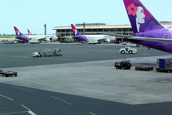 面倒なコトに、帰りはコナから成田直行でなく、ホノルル経由。飛行機は同じなのだが、一度ホノルルで完全に降機してロビーで待つ必要がある。ホノルル空港内の免税店やカフェで時間をツブすこともできるのだが、あまり買いたいモノはないし、巨大クロワッサンを食った後では食いたくても食えない。ボケボケと時間を過ごす。