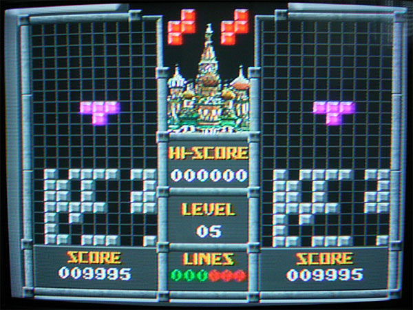 ゲームモードはノーマル、対戦、ゴミ消し、時間制限、指定ライン消しなどがある。対戦は2ライン以上消すと相手のブロックがせり上がる方式。セガのブロクシードのコンパチだが、落下中のブロックが飛んでいってしまうコトはなく、設置してからせり上がる。対戦テトリスはそのゲーム性からして、どう作ったってオモシロくならないワケがない。ふたつのコントローラが標準添付してあるコトもあり、明らかにコレがメインモードであろう。接待ゲーに最適だ。