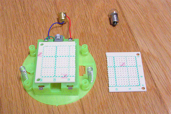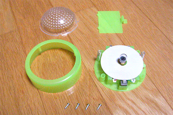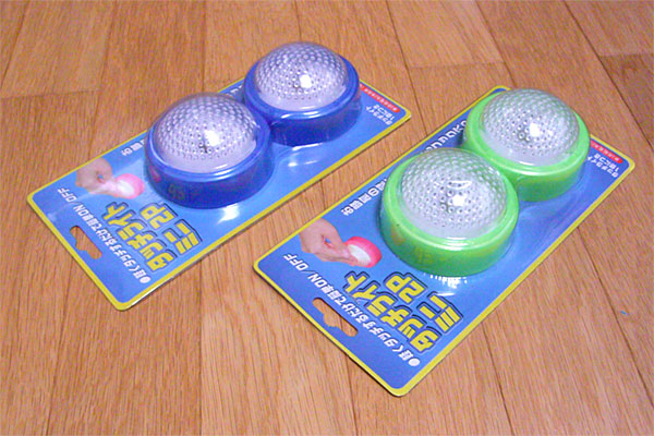 おーっとッ!! コレだッ!! へぇボタンにそっくりな「タッチライト」という、押すと光る枕元ライトである。コイツがまた自作用のケースとして秀逸なのだ。なにしろ、単3電池2本が収まる電池ボックスと、適度な容積を持つ透明なドーム型部分が、トグル動作のON/OFFスイッチを兼ねている。透明だから、動作状態を示すLEDは基板上に載せておくだけでいいし、赤外線の送受信もできるだろう。コレで2個100円!! サイコーだすッ!!