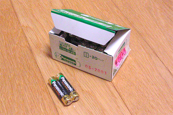 先ほど単4は十分購入したが、単3も欲しい。いつもの店で購入。しかしこの電池、中古だから初期の電圧もバラバラだし、先日はちょっとヤバいコトもあったんだけど……でも、安いんだよね。電池のクセに玄人向けだ。