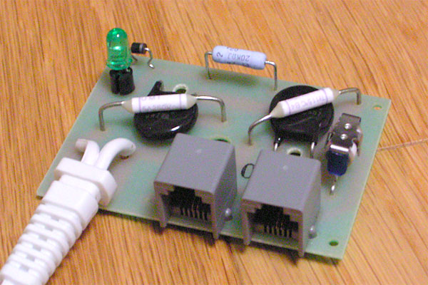 しかたないから、逆にガワだけは用意できている「赤外線リモコン信号リピータ」のケース加工のプランを練る。赤外線リモコン信号リピータには、リピータ機器間も赤外線で飛ばす方法と、有線で通信する方法が考えられるが、今回は有線を採用しようと思っている。そーなると、有線の線に何を使うかというコトになるのだが、やはりナガぁくかつヤスぅく伸ばすことを考えると、電話線がよいのではないかと思う。