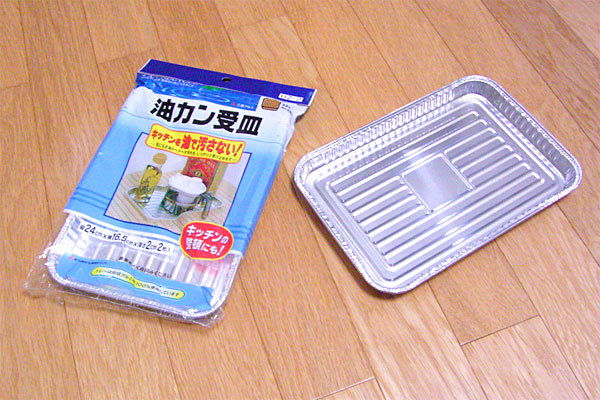 散歩の帰りに100円ショップで金属板とアンテナを探す。どちらも、現在製作中のVHFトランスミッタに使用するモノ。100円ショップに金属板やアンテナが売っているワケはないが、アルミホイルとラジオとしてなら売っている可能性がある。残念なことにラジオは売っていなかったが、金属板として使うのにちょうどよい「油カン受皿」というアイテムを発見、購入する。
