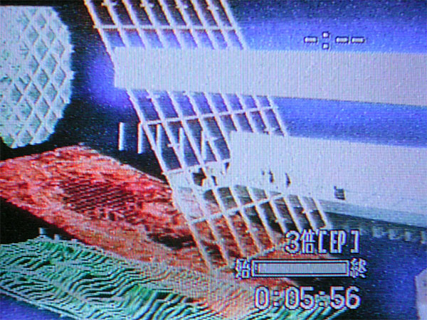 でもって、プラグを付け替え、フタを閉まるようにしたトコロで、また動作確認。今度は古いビデオデッキ(今回RFモジュレータを取り出した固体とは別のモノ)を持ち出し、古いビデオテープをかけて、例によって3mの距離を飛ばしてみる。うむ。やっぱりフザけたアンテナのワリには画質はかなりのモノだ。ちょっと白トビ傾向があるのがなんとも気になるが、どうもこれはRFモジュレータの特性のようである。アンテナ線を直結しても同様の画像だったからだ。コレばっかりは致し方ないか。まぁ、サキエルの襲来が確認でき、エヴァンゲリオンの出撃を決断できる程度の画質は確保されているから我慢するとしよう。