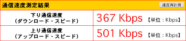 にしても、367kbpsって……これじゃ、ナローバンドとブロードバンドの中間みたいなモンだよ。ナロードバンドかよッ!! さすがにメールやネットサーフィンには大した支障はないけど、CDイメージや、WindowsUPDATEなんかしようと思ったら、ちょっとツラいんじゃないかなぁ。とほほほ。